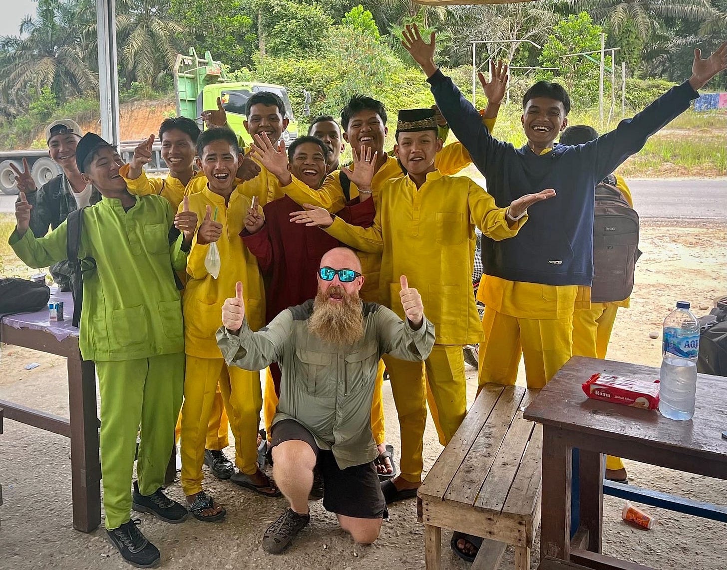 We had hundreds of people shouting hellos at us on any given day as we cycled along the roads of Sumatra this week. That is not an exaggeration.